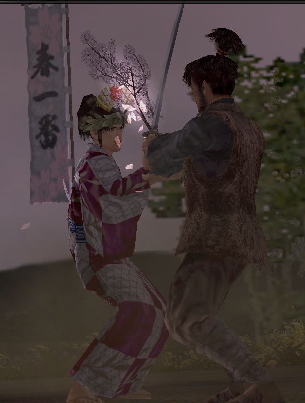 桜の枝で刀を止めたり・・・